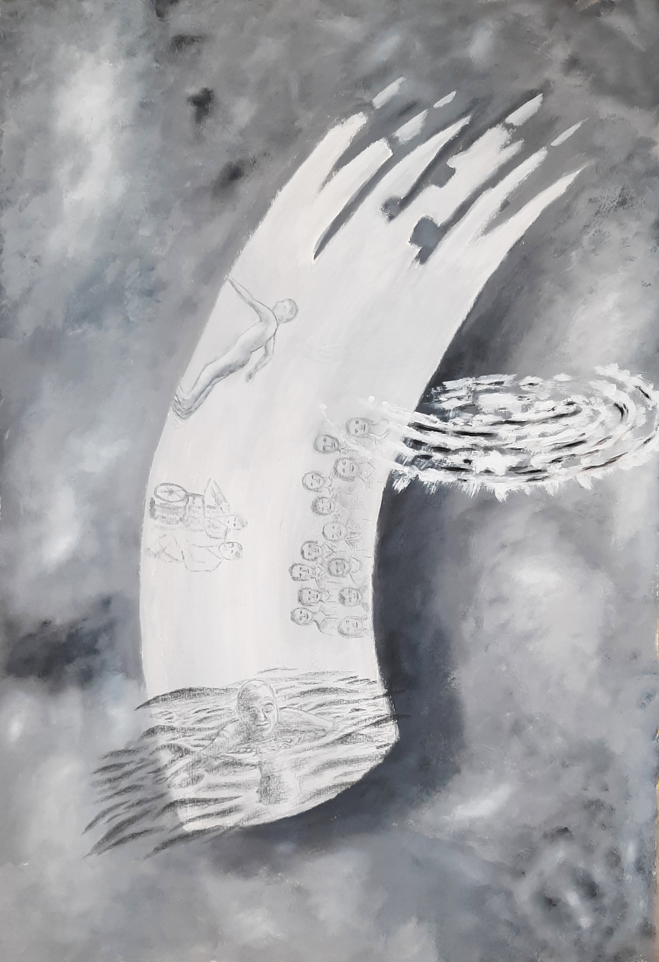 Acryl, oil, graphite on Paper, 2025, 89 x 59 cm.